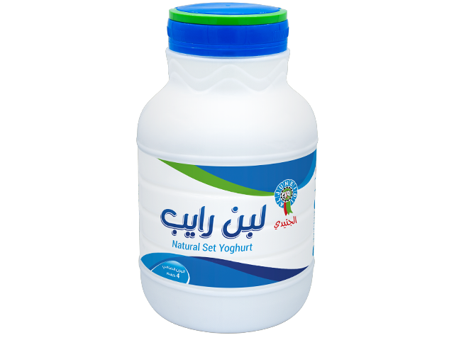 الوزن 4000 غم نسبة الدسم (3%).لبن رايب منتج من الحليب البقري ومعبأ بعبوات بلاستيكية خاصة.يحفظ مبرد على درجة حرارة أقل من (4 م) .